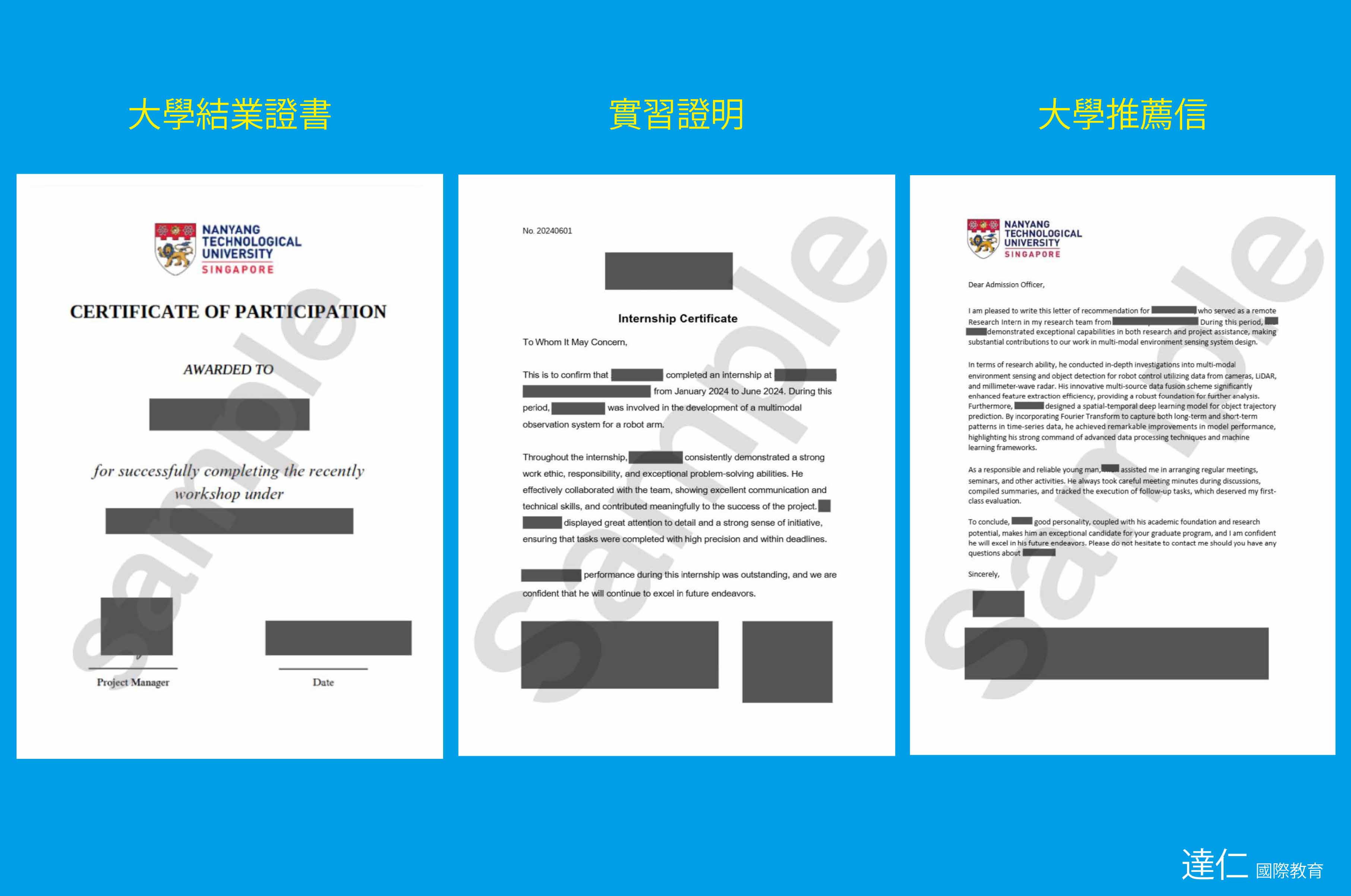 ● 大學推薦信、結業證書、學術潛力評估報告與學術論文發表